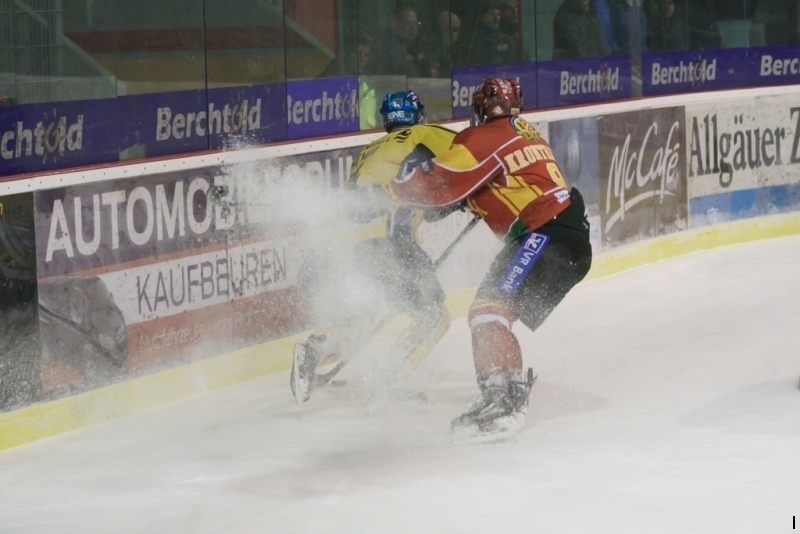 Das erste Drittel begann mit einer Schrecksekunde für die Joker. Dennis Swinnen hämmerte noch in der ersten Spielminute seinen Schlagschuss von der blauen Linie an den linken Pfosten. Danach entwickelte sich ein offener Schlagabtausch mit hohem Tempo, allerdings auch mit einer hohen Fehlpassquote auf Beiden Seiten. In der 5. Spielminute eröffnete Chris St. Jacques mit einem tollen Zusammenspiel auf Joash Burnell Daniel Oppolzer die erste dicke Chance, doch Joe Fallon im Tor der Gäste bot ebenfalls eine starke Leistung und verhinderte die Führung der Joker. Kurz nach der Überstandenen ersten Unterzahlsituation hatte Daniel Menge die Chance als er aus dem Slot heraus aufs Tor abzog, doch die Scheibe verfehlte das Tor nur knapp. Kaufbeuren überstand noch zwei weitere Unterzahlsituation, wobei auch hier der Pfosten wieder retten musste.