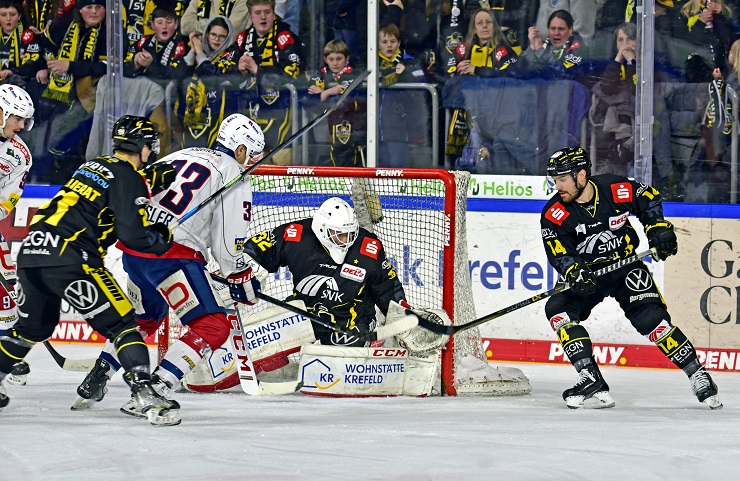 Wölfe Coach Hoffmann nahm drei Minuten vor dem Ende seinen Goalie vom Eis. Prompt erzielte wieder Cressey mit seinem Doppelpack das 4:3. Zu mehr sollte es für den Gast nicht mehr reichen. Die Krefeld Pinguine ließen nichts mehr zu. Die Auswärtsfahrt am Sonntag führt den KEV nach Ravensburg. Zu verschenken haben die dortigen Tower Stars auch nichts.