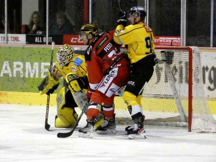 Auch im zweiten Abschnitt zeigten sich die Tigers kampfbereiter und versuchten den Puck schnell in das Drittel der Hausherren zu bringen. 121 Sekunden waren gespielt, als Tyler Gron auf die Strafbank musste. Ilya Sharipov hatte seine Mühe den Puck nicht in das Tor zu bekommen. Kaum waren die Hausherren komplett, musste ein Spieler von Bayreuth auf die Strafbank. Nun zeigten auch die Rot/Weißen etwas mehr Willen und auch in der eigenen Unterzahl hatte Olafr Schmidt gut zu tun. Ein Tor lag nun in der Luft, aber bisher eher auf Seiten der Gäste. Einen handfesten Faustkampf bekamen die Fans dann auch geboten und so wurden die Strafbänke gut gefüllt. Als Dominic Walsh in der 35. Spielminute eine weitere Strafe erhielt, konnten die Tigers ihr Powerplay nutzen und in Führung gehen. Das war wohl das Wecksignal für Crimmitschau, denn auch die Mannschaft von Trainer Jussi Tuores nutzte ihr anschließendes Powerplay um den Ausgleich zu erzielen. 50 Sekunden vor der Sirene mussten die Hausherren noch einmal zittern, aber die Schiedsrichter entschieden nach Sichtung des Videomaterials auf kein Tor für Bayreuth. Damit gingen 20 intensive Minuten zu Ende und das letzte Drittel musste die Entscheidung bringen.