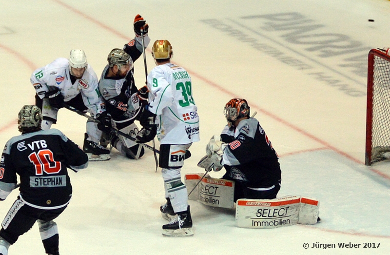 In der 34. Spielminute jubelten die Steelers und wähnten den Puck im Tor, doch dieser ging an die Latte, der Videobeweis wurde zu Rate gezogen. Kurz darauf hatte Justin Kelly die Chance im Slot, scheiterte aber an Brett Jaeger im Löwentor. Dann hatte Bietigheim Powerplay, 51 Sekunden lang sogar 5 gegen 3, aber Frankfurt überstand die Situation. Auch Frankfurt kann danach ein Powerplay ebenfalls nicht nutzen und so blieb es bei der knappen Führung für die Hausherren.