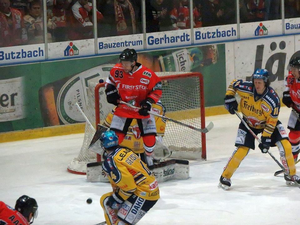 Und diese Spannung trieben beide Mannschaften auf den Höhepunkt. Die Huskies erwischten den erhofften Traumstart. Braden Pimm traf nur 54 Sekunden nach Wiederbeginn per Konter zum 5:5 und brachte die Stimmung damit endgültig auf den Siedepunkt. Doch auch jetzt hatten die Löwen wieder eine Antwort parat. Erneut war es Breitkreuz, der Keller überwinden konnte und auf 5:6 stellte. In der Folge war es ein Spiel auf Messers Schneide. Die tolle Kulisse in der altehrwürdigen Eissporthalle peitschte ihr Team weiter nach vorne. Und die Zuschauer wurden belohnt. Mit einer Energieleistung zog Phil Hungerecker in der 51. Spielminute über den rechten Flügel vor Jaegers Tor und überwand diesen auf der Stockhandseite.