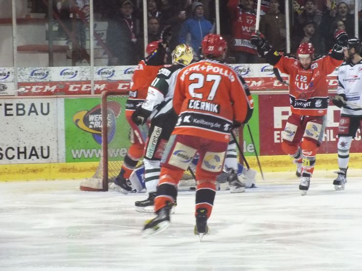 Die Overtime fing gleich mal mit einer doppelten Unterzahl für die Hausherren an, doch Rosenheim schaffte es nicht sich im Drittel von Crimmitschau festzusetzen. Die Westsachsen überstanden ihre Unterzahl unbeschadet und konnten dann einen Fehler im Aufbauspiel der Gäste nutzen. Ivan Ciernik und Martin Bartek liefen auf Goalie Steinhauer zu und der Puck zappelte tatsächlich im Netz. Das erlösende 5:4 war geschafft und so glich man die Serie aus. Damit steht auch fest, dass ein 6. Spiel in dieser Serie stattfinden wird.