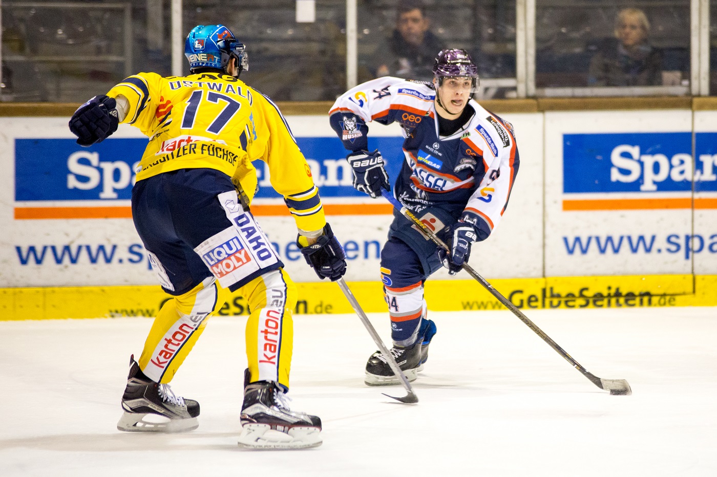 Dass man als Überraschungsteilnehmer in den Playoffs beim Dauerfinalisten der letzten Jahre nicht unbedingt in der Favoritenroll ist, überrascht sicher nicht. Dass sich die Bedingungen noch vor dem ersten Bully noch ungünstiger entwickeln, macht die Aufgabe noch einmal schwerer. Mit Christopher Kasten, Sebastian und Valentin Busch fehlten Trainer Waßmiller drei ganz wichtige Spieler, die ihn zu Umstellungen zwangen. So verzichtete er auf Goalie Tomas Vosvrda, um vier Kontingentstürmer einsetzen zu können. David Wohlberg rückte in Reihe drei zu Marsall und Rypar, Sergei Stas führte die erste Reihe mit Kuchejda und Robinson.