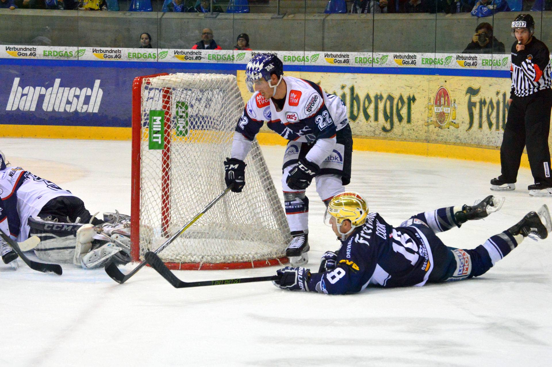 Als nach nicht einmal einer Minute im zweiten Abschnitt Freiburg der Ausgleich gelang wurden ihre Vorteile dann auch immer mehr auf der Anzeigentafel sichtbar. Die Kombination auf engsten Raum, an deren Ende dann der völlig frei gespielte Billich einschoss, war jedenfalls sehenswert. Das gab den Gästen noch mehr Aufwind und im Gegensatz zum ersten Drittel, wo man doch einige Chancen ungenutzt liegen ließ, hatte man das Visier nun besser eingestellt. Erst schlug Airichs Fernschuss gegen den überraschten Vosvrda ein und als wieder Billich per Tip-in nach einem scharfen Pass in der Slot den Schläger rein hielt und damit auf 1-3 stellte, war die Partie nur 39 Sekunden später komplett gekippt. Von diesem Schock mussten sich die Tigers erst einmal erholen und das dauerte etwas. Eine große Möglichkeit wieder heran zu kommen hatte dann Bartosch per Break, doch die Aktion seines Gegenspielers wertete der Schiedsrichter nicht als Strafe oder gar Penalty und so ging man mit 1-3 zum zweiten Mal in die Kabine.