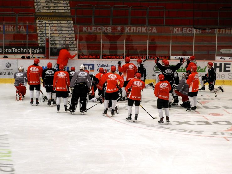 Kim Collins legte beim Training in dieser Woche den Fokus vorerst auf das Derby in Dresden. Nach der Videoanalyse der Spiele gegen Ravensburg und in Deggendorf muss vor allem die Defensive stabiler und die eigenen Torhüter besser geschützt werden. Alle Verteidiger sind an Bord und Brett Kilar wird im morgigen Spiel von Beginn an im Tor der Westsachsen stehen. Die Eispiraten dürfen sich von der sicherlich guten Stimmung in Dresden nicht verunsichern lassen und wollen einfach Eishockey spielen. Dabei ist es auch wichtig, dass man mehr Schüsse auf das Tor bringt und dadurch Möglichkeiten zum Nachschuss herausspielt. Am heutigen Donnerstag stand das Powerplay und Penaltykilling vordergründig auf dem Trainingsplan. Jordan Knackstedt war kein besonderes Thema. Er ist zwar ein guter Spieler und Topscorer, aber die Eispiraten spielen nicht nur gegen ihn, sondern gegen die Eislöwen. Patrick Klöpper wird eine Sturmreihe mit Rob Flick und Julian Talbot bilden. Christian Hilbrich geht zurück in eine Linie mit Patrick Pohl und Vincent Schlenker. Christoph Kabitzky wird gemeinsam mit Tobias Kircher und Dominic Walsh auflaufen.