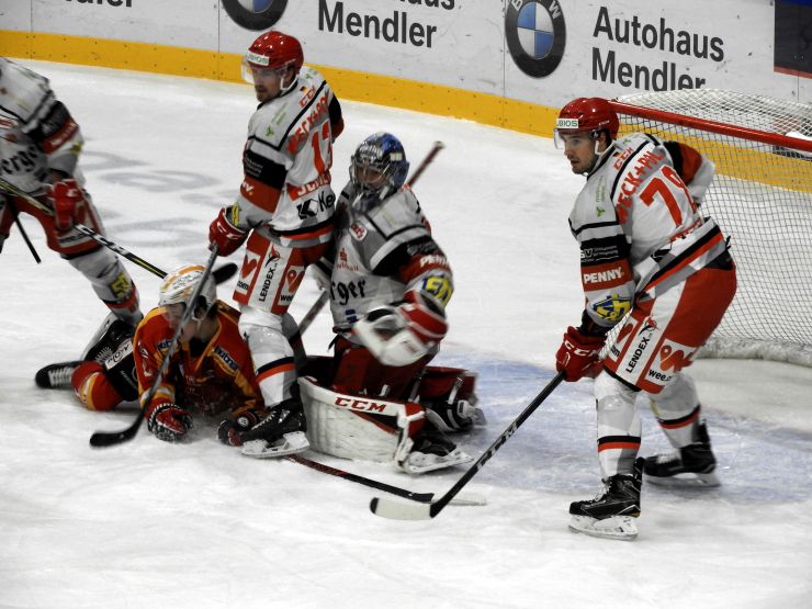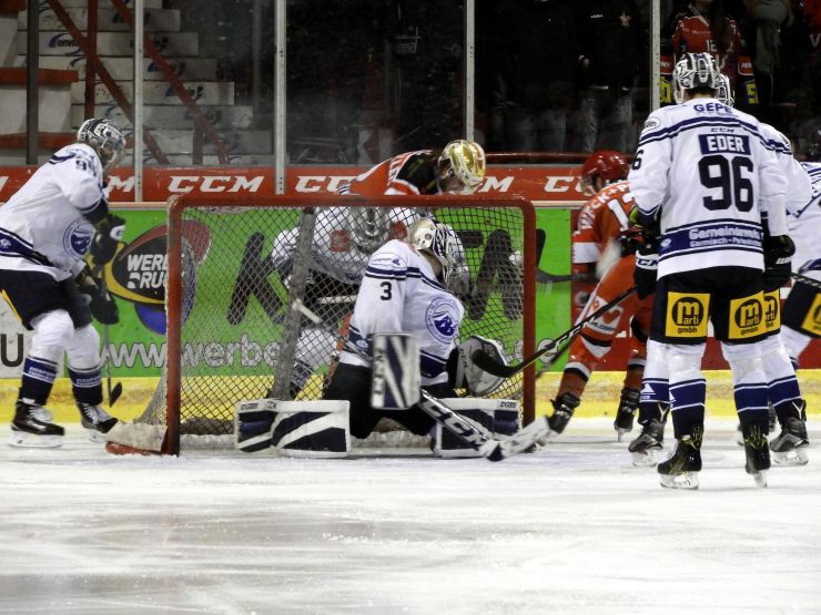 (DEL2/Bayreuth) PM Nach einigen Minuten Anlauf nahm diese Partie der Tabellennachbarn im guten Mittelfeld der DEL2 Fahrt auf und besonders die Hausherren sorgten für die ersten Highlights. Nach einem Scheibengewinn in der Ecke von Valentin Busch legte der ab auf seinen Bruder Sebastian in Mittelstürmerposition.