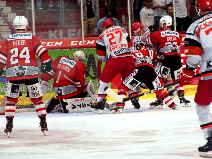 Auch der Schlussabschnitt hatte es in sich. In einem schnellen und körperbetonten Spiel waren es zunächst die Hausherren aus Franken, die eine Unachtsamkeit in der westsächsischen Defensive nutzten. Nutznießer war dabei erneut Michal Barta, welcher Bayreuth mit seinem zweiten Tor einmal mehr in Front schoss - 3:2 (45.). Doch das sich die Eispiraten in diese Partie zurückkämpfen können, bewiesen sie auch im dritten Drittel. Nach einer schönen Vorlage von Dominic Walsh traf Vorjahresgoldhelm Patrick Pohl zum 3:3 und der Ausgang der Partie war nach 51. Minuten somit wieder komplett offen. Zwar hatten die Hausherren in den Schlussminuten ein leichtes optisches Übergewicht, doch die Schützlinge von Kim Collins verteidigten gut und retteten das Remis trotz einer Unterzahl kurz vor Schluss ins Penaltyschießen.