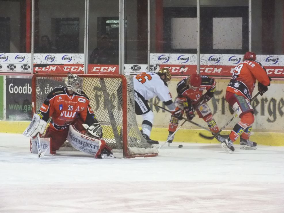 Dort belauerten sich beide Teams zunächst, es war offensichtlich, dass keiner den entscheidenden Fehler begehen wollte. In der 53 Minute brachte ein Geniestreich von Drew MacKenzie die Vorentscheidung. Nach dessen sehenswertem langen Pass lief Thomas Merl allein auf das Crimmitschauer Tor zu und schloss mit der Rückhand zum 3:2 ab.