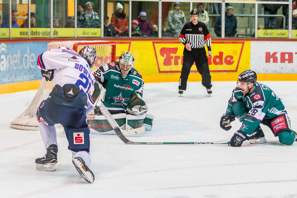 Bei den Starbulls Rosenheim stürmte diesmal Joseph Lewis in der ersten Reihe neben Tyler Scofield und Tyler McNeely. Simon Fischhaber rückte dafür in den dritten Sturm, wo er neben Greg Classen und Simon Heidenreich agierte. Die zweite Sturmreihe bildeten Michael Baindl, Greg Gibson und Manuel Edfelder. Im Gegensatz zu den Starbulls stürmten die Gäste aus Kassel von Beginn an mit vier Offensivreihen.