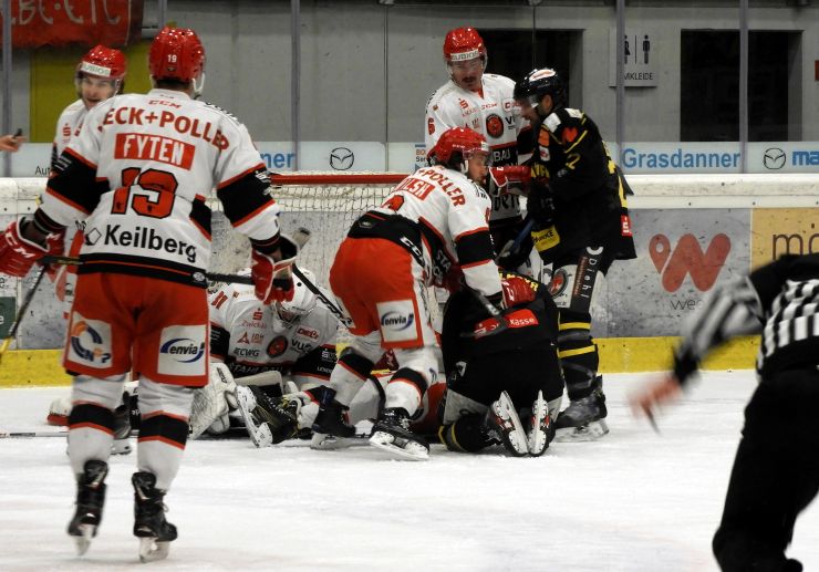 In der Folgezeit befreiten sich die Gelb-Schwarzen aber wieder etwas besser und hatten bei einem Solo von Veisert über Außen das Pech, dass auch per Videobeweis nicht zu erkennen war, ob die Scheibe über der Torlinie war oder nicht. Davon ließ man sich aber nicht einschüchtern, sondern setzte weiter nach. Beim nächsten gefährlichen Abschluss aus dem Zentrum von Järveläinen rutschte Heim-Goalie Meisner die Scheibe dann durch und so ging man wieder mit einem Unentschieden auch in die zweite Pause.