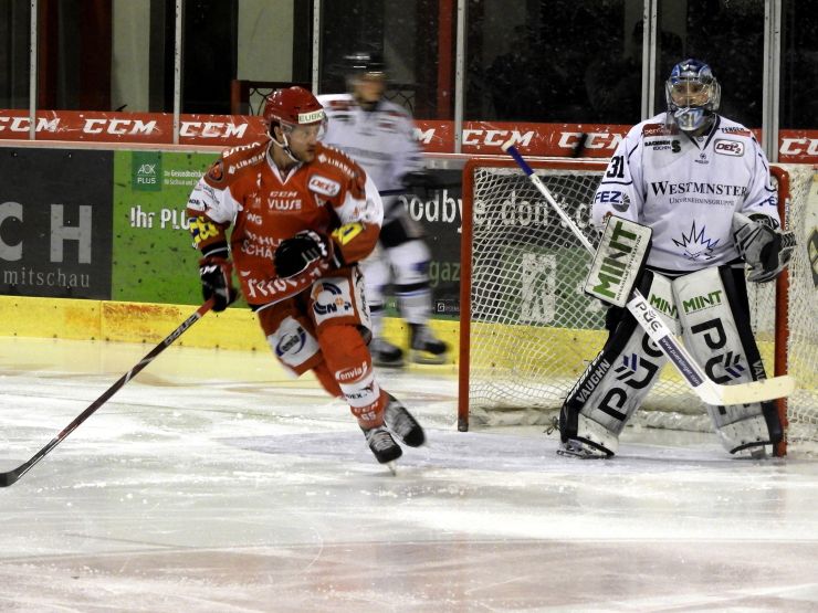 Im letzten Drittel war die Spannung im Stadion regelrecht greifbar, denn Allen war klar, dass das nächste Tor wohl die Entscheidung bringen wird. Kaufbeuren erhielt in der 45. Spielminute erneut eine Strafe und auch diesmal ließen die Crimmitschauer ihre Chancen zu leichtfertig liegen. Stefan Vajs hielt seinen Kasten sauber und konnte sich dabei zumeist auch auf seine Vorderleute verlassen. Kaufbeuren versuchte immer mal wieder gefährlich vor das Tor von Brett Kilar zu kommen und somit konnte sich auch der Torhüter der Hausherren nicht über zu wenig Arbeit beschweren. Die Minuten vergingen und eine Entscheidung in der regulären Spielzeit war nicht so recht in Sicht. Wieder war es die Reihe um Center Patrick Pohl, die die 2.131 zum Jubeln brachten. In der 47. Spielminute gelang Christian Hilbrich sein zweiter Treffer an diesem Abend und somit die verdiente Führung der Hausherren. Die Jokers taten sich etwas schwer kontrolliert in das Drittel der Westsachsen zu kommen und so lief ihnen die Zeit davon. Auch die Auszeit 80 Sekunden vor dem Ende und die Herausnahme von Stefan Vajs brachte nicht den erwünschten Erfolg. Christian Hilbrich und Rob Flick verfehlten jeweils den Treffer ins leere Tor, aber die 3 Punkte blieben im Sahn. Das Spiel sah an diesem Abend zwar nicht so locker leicht wie gegen Dresden aus, aber am Ende zählt nur der Sieg.