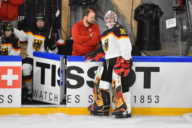 U18-Bundestrainer Alexander Dück: „Die Jungs haben alles versucht, das Spiel heute für uns zu entscheiden und haben bis zum Schluss noch gekämpft. Jeder war von Anfang an da und hat versucht die Vorgaben bestmöglich umzusetzen. Wir hätten mehr von der Strafbank wegbleiben müssen, diese Strafen haben uns am Ende dann wehgetan. Es war heute keine einfache Situation für uns. Trotzdem möchte ich der Mannschaft mein Lob aussprechen.“