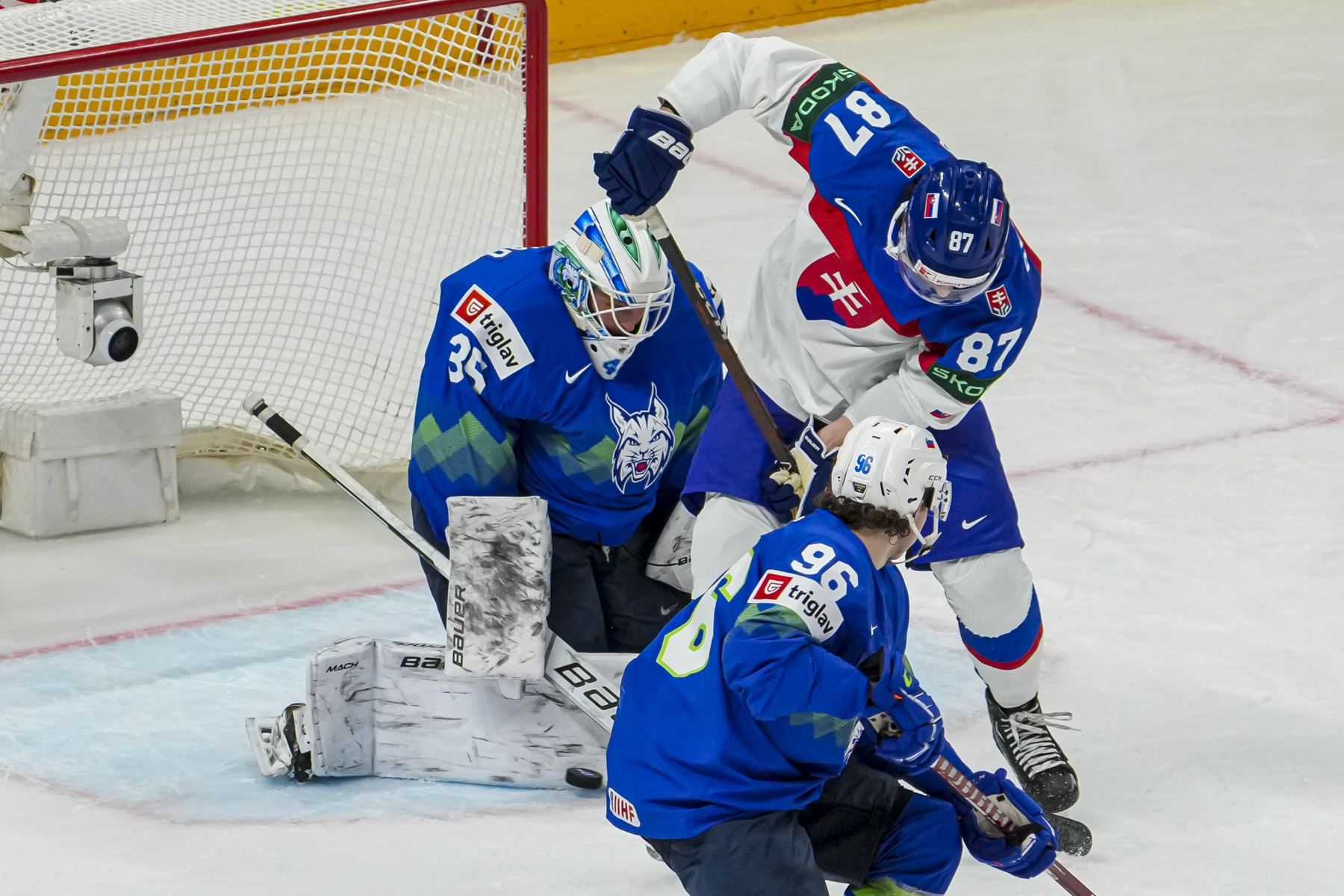 Beide Teams standen vor der Parite unter Druck und schenkten sich von Beginn an Nichts, es gab viel Tempo und packende Zweikämpfe an den Banden, die großgewachsenen Slowaken setzten einige harte Checks, aber Slowenien hielt stabil dagegen und zeigte vorallem ein starkes Penaltykilling.