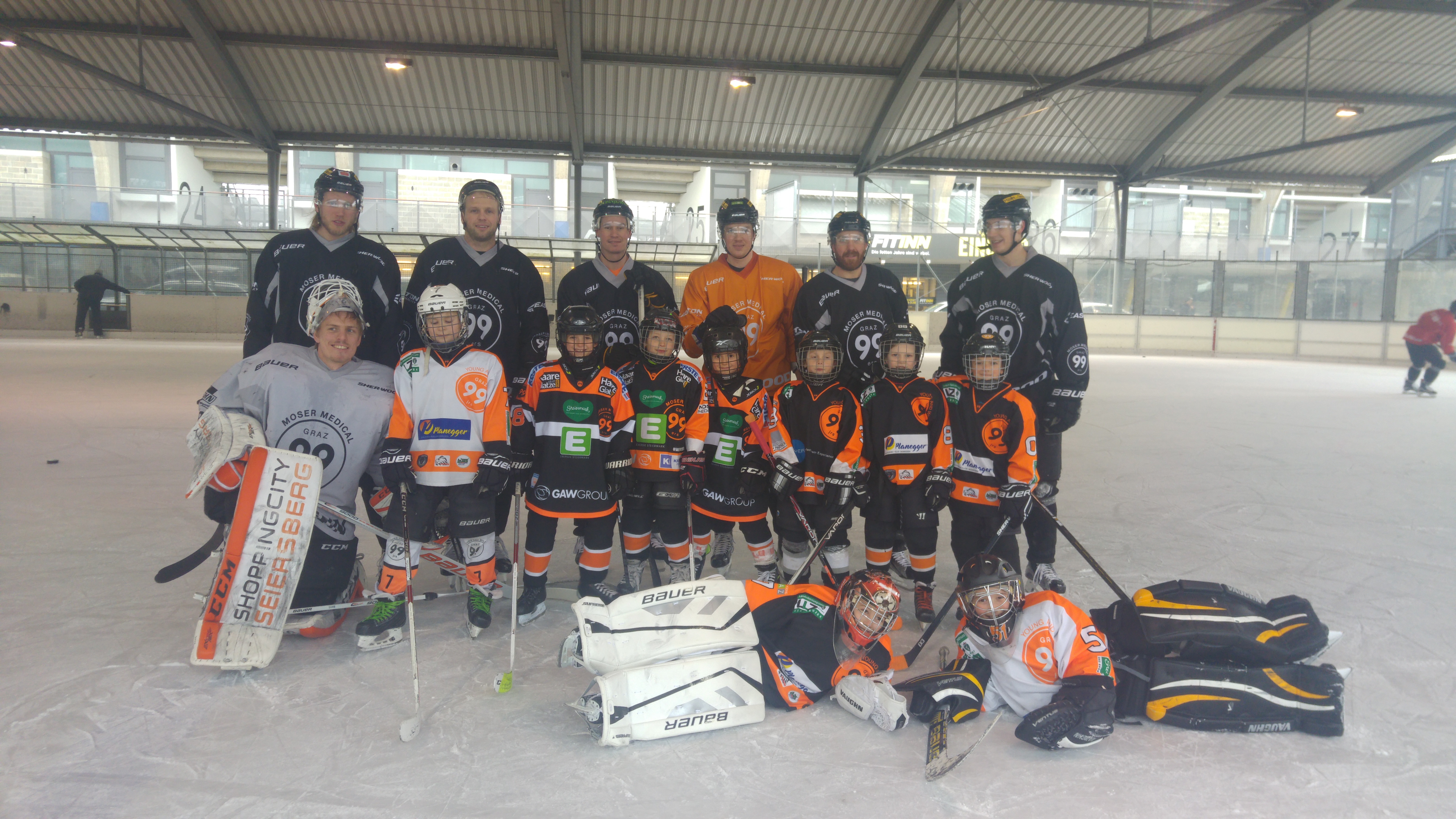 Der Kontakt zur Kampfmannschaft ist für die Kleinen wichtig, wir sind ihre Vorbilder und haben immer 5 Minuten Zeit für ein Foto oder ein Autogramm, ergänzt Oliver Setzinger, Kapitän der Graz 99ers.