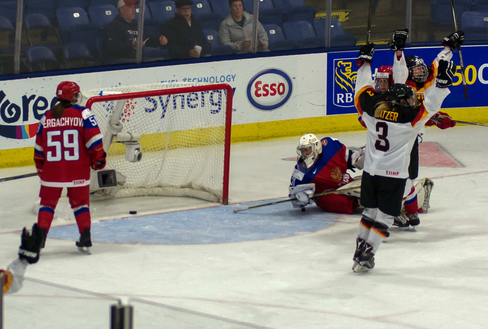 Bange Minuten galt es zu überstehen, als eine deutsche Spielerin zu Beginn des letzten Drittels auf die Strafbank musste, aber Jenny Harß zeigte all ihr Können und bewahrte ihr Team vor einem Rückstand. Dann kam die 50. Spielminute: Rebecca Graeves harten Schuss von der von der blauen Linie lenkte Marie Delarbre unhaltbar ins russische Tor zur 2:1-Führung ab. Die letzten Minuten waren dann an Spannung nicht zu überbieten, Russland drängte auf den Ausgleich, doch die deutschen Frauen verstanden es, den Puck aus der Gefahrenzone zu halten. Riesenglück hatte die DEB-Auswahl als 59 Sekunden vor der Schlusssirene der Pfosten zum besten Freund der deutschen Mannschaft wurde. Doch auch die Herausnahme der Torfrau brachte den Russinnen nichts mehr ein und der nachfolgende Jubel der deutschen Spielerinnen war groß.