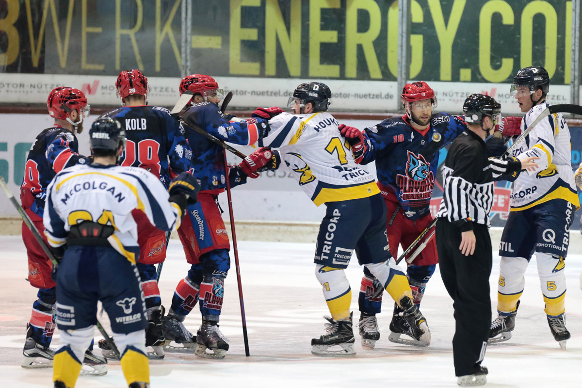 Strafzeiten: Selb 8, Tilburg 18 + 10 für van Gorp