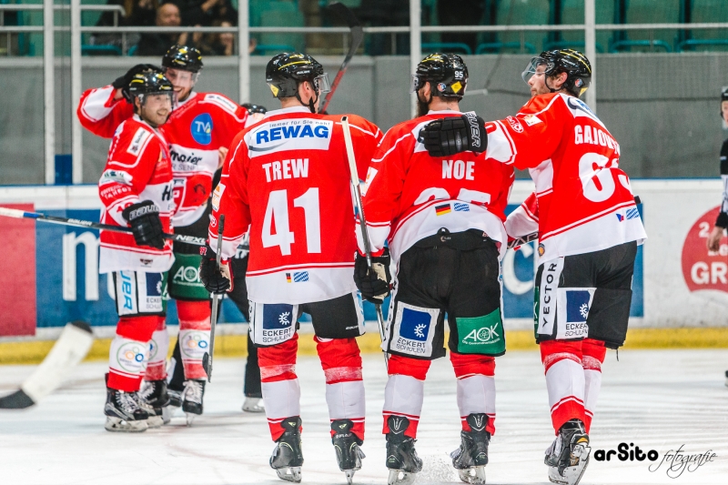 „Wir haben uns zu weit zurückgezogen, waren nicht aggressiv genug und ließen den Gegner zu viel Platz“, so Thom kurz nach dem Spiel in der Eiszeit bei Radio Euroherz. Letztendlich fehlt uns auch die Durchschlagskraft nach vorne – der beste Sturm der Liga diesmal mit zu wenigen Akzenten. Die Hausherren müssen ohne die Dienste der verletzten Brenner, Habermann, Wolsch, Stähle und Stiefenhofer antreten, verstecken sich aber keineswegs und können bereits in der Anfangsphase einige Male unseren Keeper Stefaniszin auf die Probe stellen. Mitte des Anfangsdrittel schnappt sich Noe den Puck hinter unserem Gehäuse und schiebt, per Bauerntrick, zum durchaus verdienten 1:0 ein. Unsere Jungs tun sich schwer, Chancen zu erarbeiten und finden nicht wirklich ins Spiel. Der EVR dagegen weiterhin mit Zug zum Tor. Als Heger nur auf Kosten eines Penaltys gestoppt werden kann, bietet sich den Domstädtern die Chance die Führung auf 2:0 auszubauen. Mit einer tollen Parade kann Stefaniszin dies aber verhindern. Die Pausensirene kommt für uns zum richtigen Zeitpunkt.