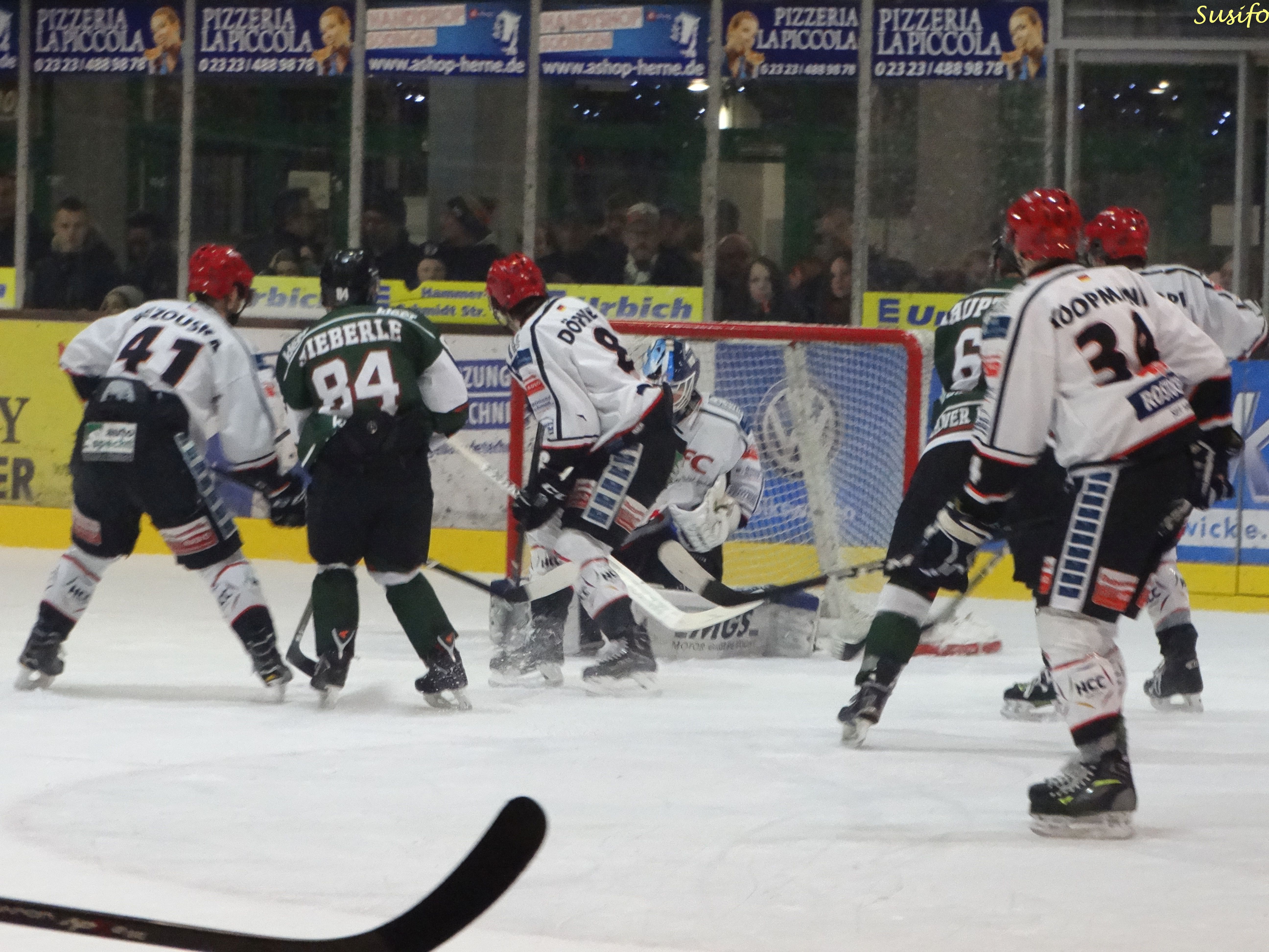 Unterstützend liefen Phil Bergemann ( derzeit Bundeswehrsoldat), Florian Stockel ( Jugendspieler) und Christian Ciupka ( Freibeuter) auf. In Gedanken waren die Spieler auch bei Mannschaftskamerad Tomas Kurka, der nach seiner Verletzung ( Beinbruch) beim Auswärtsspiel am vergangenen Mittwoch und mittlerweile mehreren OP’s immer noch im Krankenhaus in Herne liegt.