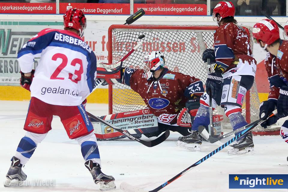 Das Spiel begann ausgeglichen. Beide Mannschaften konnten sich zunächst Chancen erspielen, jedoch ohne nennenswerten Erfolg. Beide Torhüter, Sandro Agricola und Cody Brenner, zeigten ihre ganze Klasse, sodass es nach dem ersten Spielabschnitt immer noch 0:0 stand. Im zweiten Drittel kamen die Hausherren dann besser aus der Kabine und wurden auch früh dafür belohnt. In der 24. Spielminute fälschte Peter Flache einen Schuss von der blauen Linie ab und der Puck schlug unhaltbar für Sandro Agricola im Deggendorfer Tor ein. Dieser Treffer gab den Regensburgern dann Aufwind, jedoch schaffte es die Deggendorfer Abwehr zunächst, weitere Gegentreffer zu verhindern.