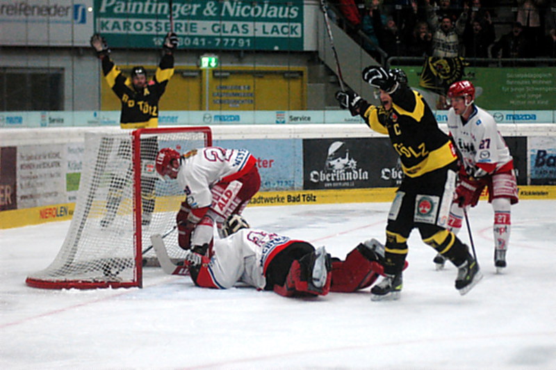 Dann wurde es hektisch: Zunächst blieb Florian Stauder auf dem Eis liegen (44.), und Jordan Baker und Fabian Weyrich lieferten sich einen Ringkampf. Schiedsrichter Alfred Hascher schickte Baker mit 2+2+2+10 Strafminuten auf die Bank, Weyrich mit 2+2. Anschließend schickte der Unparteiische Löwen-Coach Kammerer wegen unsportlichem Verhalten in die Kabine. Die doppelte Unterzahl überstanden die Tölzer schadlos. Spannend wurde es trotzdem noch einmal, als der beste Peitinger, Milan Kostourek, den Anschluss erzielte (48.).