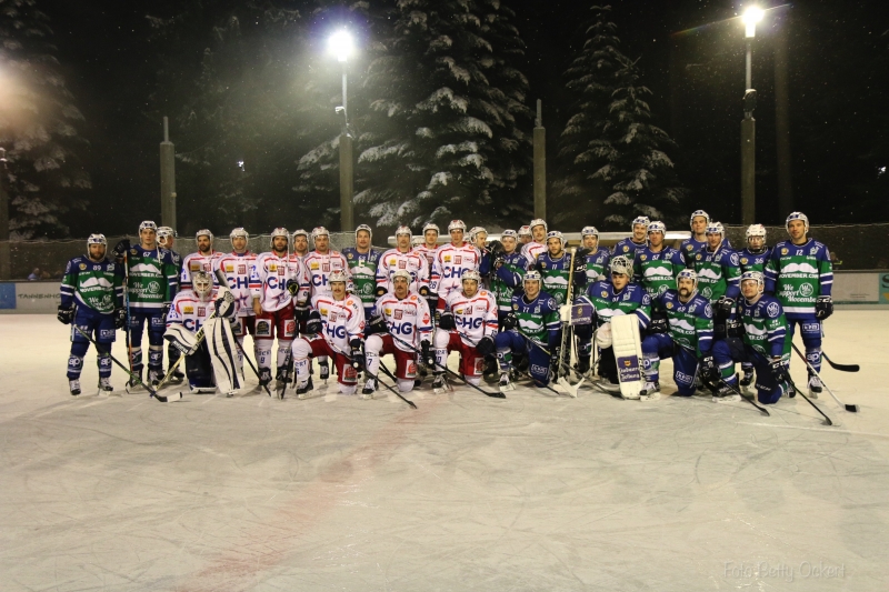 Offenbar hatte auch der Wettergott die Überschrift des Spiels gelesen und entsprechend darauf rea-giert. Jedenfalls schneite es am Spieltag so kräftig, so dass das „Winter Classic“ seinem Namen alle Ehre machte und dem Eismeister im offenen Lindenberger Eisstadion jede Menge Zusatzrunden abnö-tigte. Das Ganze hielt 600 wetterfeste Zuschauer aber nicht davon ab sich den Spaß unter freiem Him-mel zu gönnen. Eine tolle Kulisse zur Neueröffnung des runderneuerten Lindenberger Eisstadions