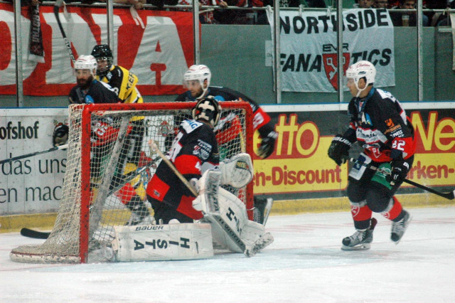 (Oberliga/Duisburg) SL Mann des Spiels in einem 60 Minuten Hardcore-Gestochere um den Puck, der von den Moskitos zurückgekehrte Cornelius Krämer. Nicht nur seine beiden Tore, sondern auch seine Präsenz vielen in diesem sonst über die fast gesamte Spielzeit trostlosen und zerfahrenen Puck-Geschubse positiv auf. Ein Spiel ohne Höhepunkte. Lediglich die mitgereisten Erfurter Fans verdienten sich ein ‚Sehr gut!‘.