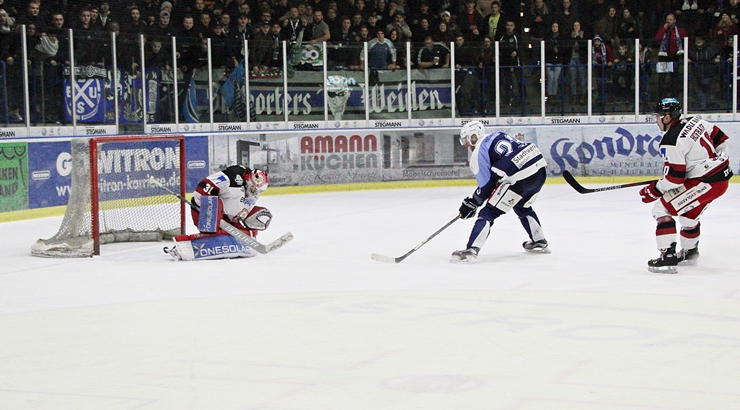 Siegtreffer in Overtime gegen den EV Landshut (Foto: Jürgen Masching)