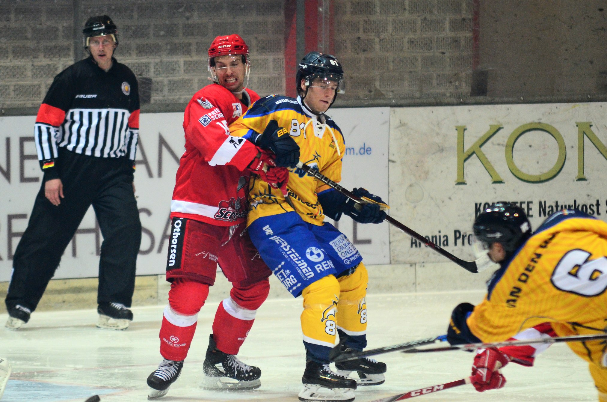 Fangen wir dennoch erstmal beim Anfang an, wo sich beide Teams abtasteten und wenig bis keine Fehler in der eigenen Defensive zulassen wollten. Bedingt durch einige Pfiffe des Schiedsrichtergespannes, was diese Partie auf beiden Seiten an einer sehr kurzen Leine leitete kamen die Mannschaften bereits früh zu Überzahlsituationen. Die Tilburger mit dem besten Unterzahlspiel der Liga, die Scorpions mit dem besten Powerplay, ließ einen heißen Tanz der Special Teams erahnen. So war es auch ein Überzahlspiel, wo die Hausherren in der achten Minute die Führung erzielen konnten. Björn Bombis kam unmittelbar vor Ersatztorhüter Ruud Leeuwensteijn in Scheibenbesitz