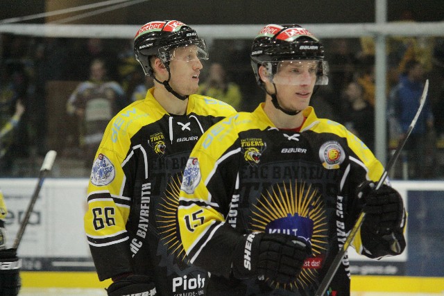 Von Beginn an übernahmen die Tigers die Kontrolle über das Spielgeschehen und schon nach wenigen Sekunden hätte man in einer 3 auf 1 Situation die Führung erzielen müssen. In der Folge hielten die Mannen um Bartosch, Geigenmüller & Co. mit Einsatzwillen und einer über die ganze Partie anhaltenden konzentrierten Leistung die Gäste aus Regensburg auf Sparflamme. Just in diese Bayreuther Drangphase fiel dann der Gegentreffer durch die Regensburger „Tormaschine“ Oakley. Vier Minuten später stand dann aber Förderlizenz-Spieler Stefan Reiter goldrichtig im Slot, nahm eine Vorlage von Theoret dankend an und überwand den Regensburger Torsteher nach einem kurzen „move“ mit der Rückhand.